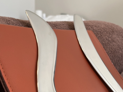 当店では「かっさ」を使用しながら施術を行います。かっさを使用することで、一定のペースや力加減を保った施術が可能です。これにより、安定した効果を促すことができます。また、かっさを使用することで、お悩みの箇所をピンポイントでほぐすことができます。さらに当店では、2種類のかっさを使用。身体のカーブや筋肉の硬さに合わせて最適なかっさを選んで施術を行います