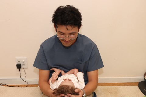 赤ちゃんに対する整体は、ストレスを与えないことが重要です。施術をするにあたって、豆腐が崩れないほどの優しいタッチで赤ちゃんに触れます。